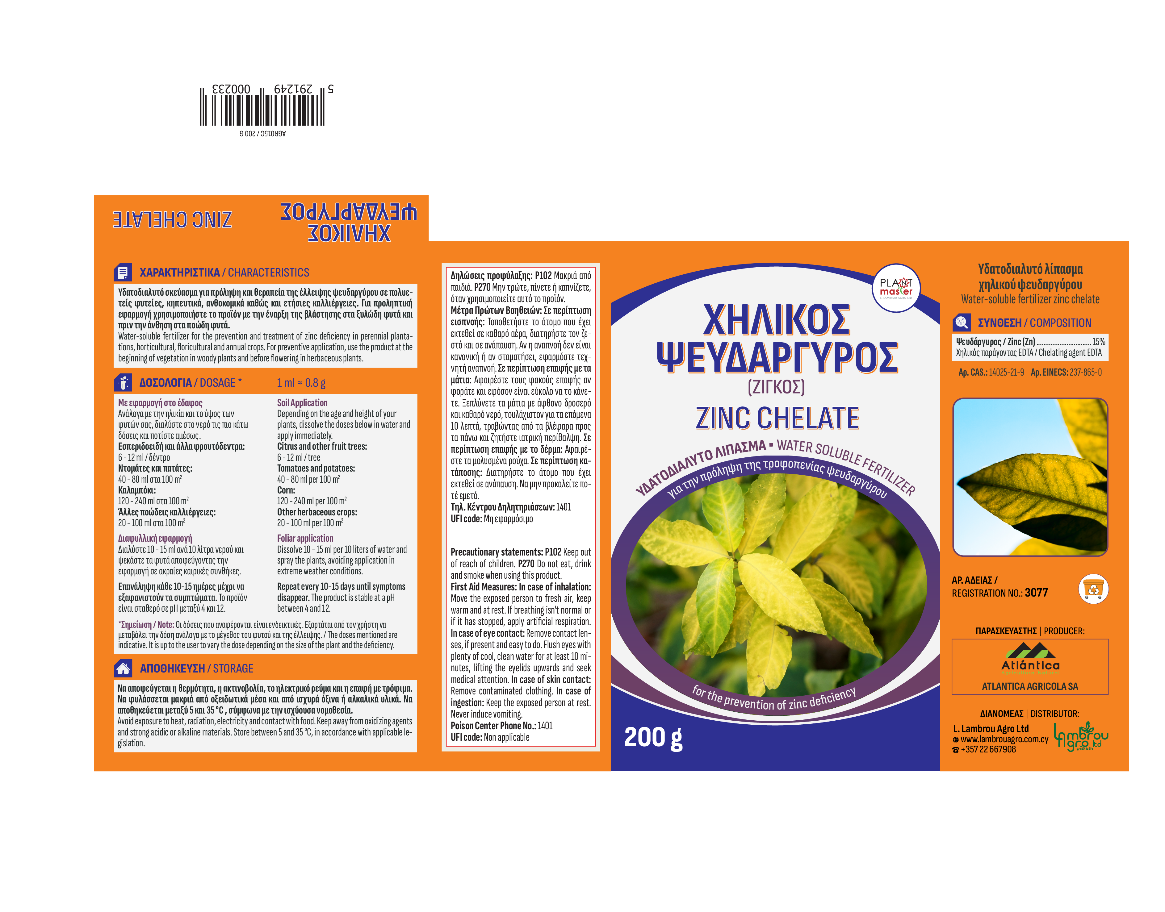 Είναι ένα βιολογικό παρασκεύασμα ψευδαργύρου για την πρόληψη και αντιμετώπιση της ανεπάρκειας ψευδαργύρου σε πολυετείς καλλιέργειες, φυτικές καλλιέργειες, ανθοκαλλιέργειες καθώς και ετήσιες καλλιέργειες.